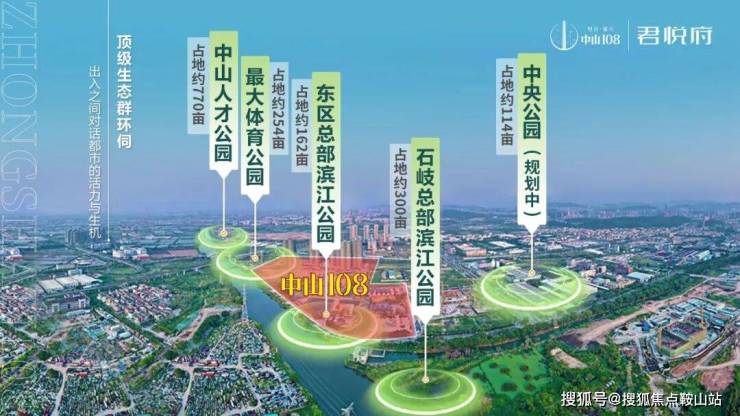 162 畝東區總部濱江公園、254畝體育公園、770 畝中山人才公園、114 畝中央公園(規劃中)、330畝石岐總部濱江公園