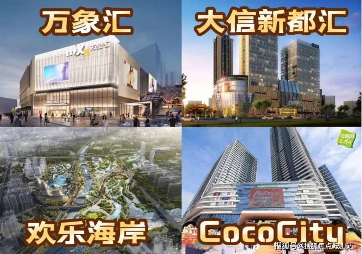 15分鐘優質配套生活圈項目內7萬㎡花園式立體商業街區、石岐大信、cococity、萬象匯、歡樂海岸等