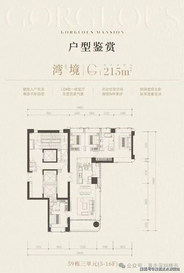 前海桂湾「前海时代尊府」取证加推最后大平层户型,为59栋的三个单元(59-1/2/3栋),面积约为215-255-295㎡,三梯两户,全南向景观,预计2026年交付。