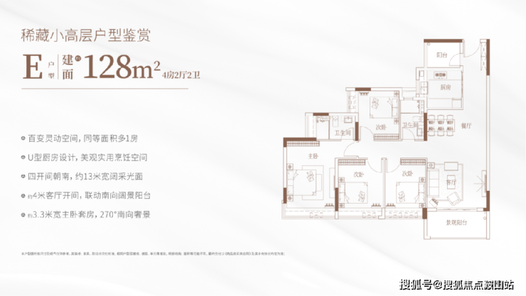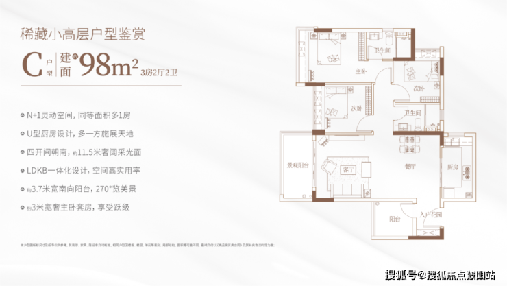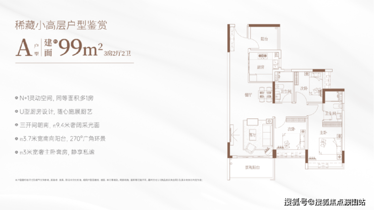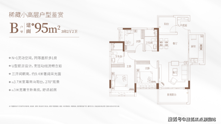 项目全面启用围合式全南向布局,所有楼栋均偏转约40°,全体户型面朝东南/西南采光,100%迎接阳光挥洒。