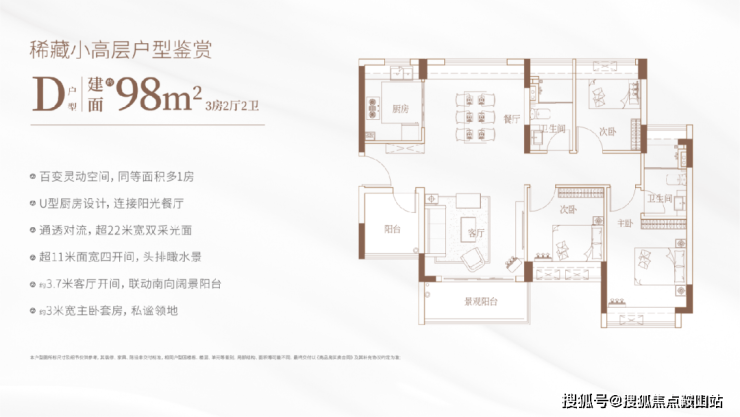 低密舒居:仅9-11层亲地设计,2.13低容积率,临水而居,生活更加舒适。