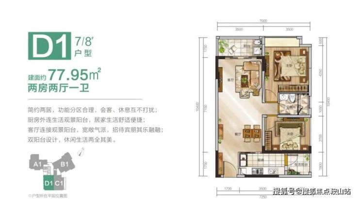D1户型(7#8#):两房两厅