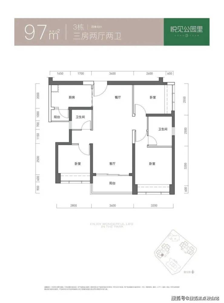 97㎡的3房2厅2卫,折后总价365-366万/套,单价3.72-3.73万/㎡。