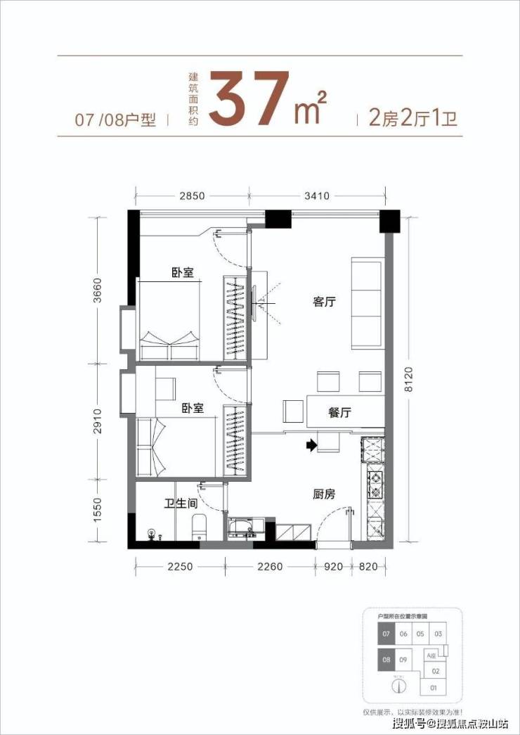 【产品面积】约37㎡小两房(实际套内使用面积接近54㎡)