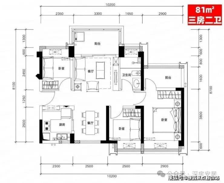 H02户型:81㎡三房二厅二卫