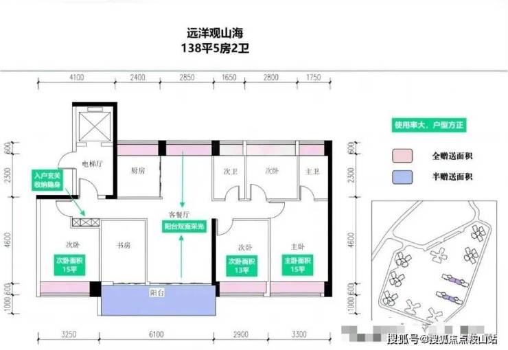 👍户型面积:95/108-115/138平(三至四房)