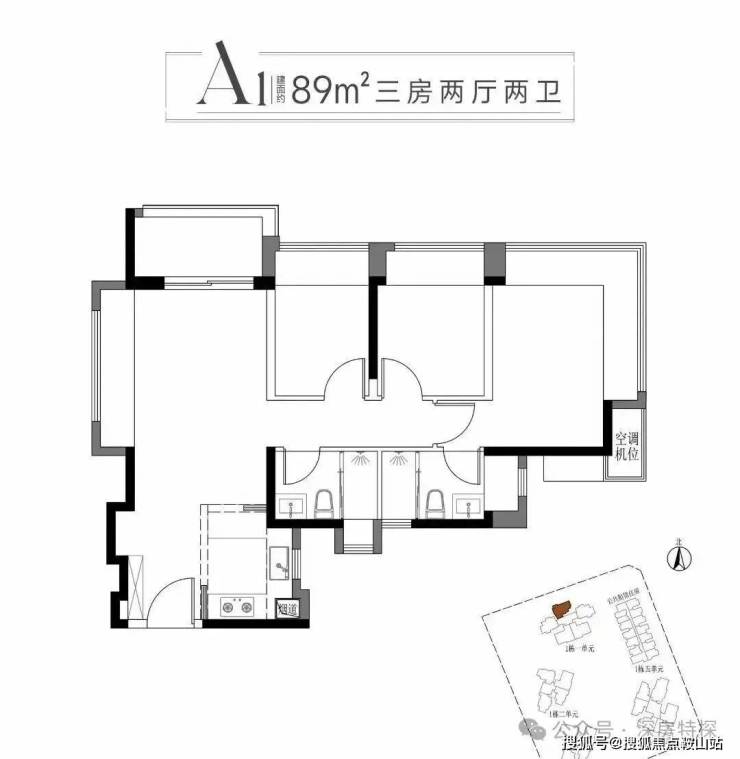 从流出的户型图可以看出,预计首推一期的1栋1单元,产品面积约89-112㎡ 3-4房,具体尺寸数据还没出,新规得房率还是值得期待的。其中89㎡ 3房2厅A1户型为常规经典竖厅,主卧有270度大飘窗