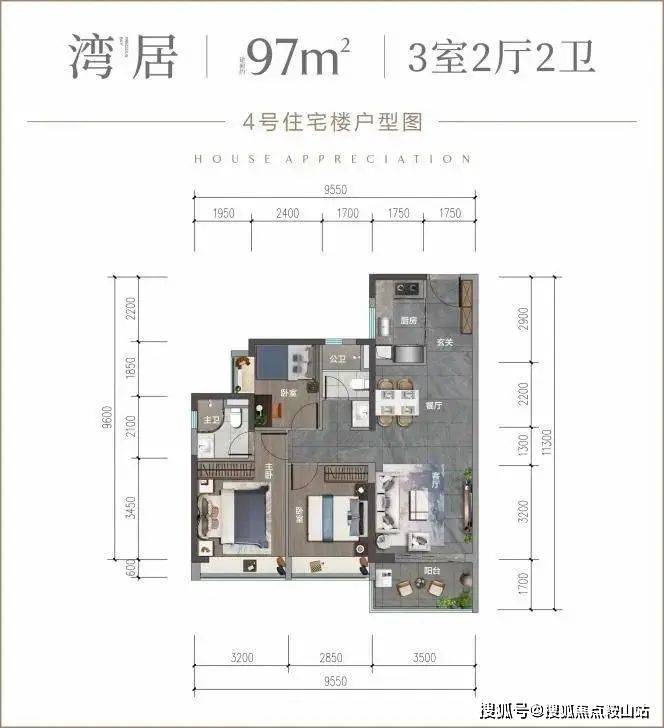 建面约97㎡三房,享有约9.5m朝南面、极致采光通透体验,保证家庭空间日照充足,日常即能享受到常驻的温暖阳光,在家中皆可收藏四季美景的变换。