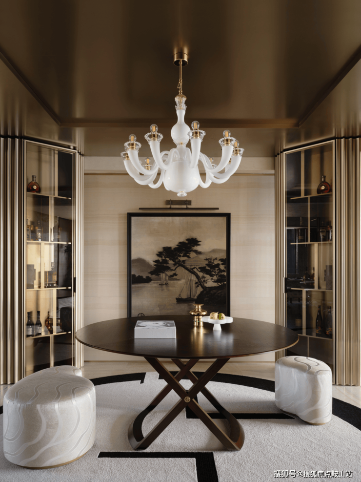 Armani Casa的设计将水墨刺绣融入到居室中,巧妙地布局,描绘着举杯谈笑、雅士风度的迎客之道。