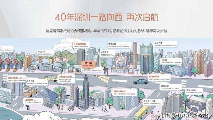· 陆:周边有“一横三纵+三大高速”的交通路网,从项目出发经南环路接沿江高速约15分钟到前海,约20分钟到南山。另有宝安大道、107国道、京港澳高速,外环高速多条线路,约7分钟直达国际会展城及海洋新城