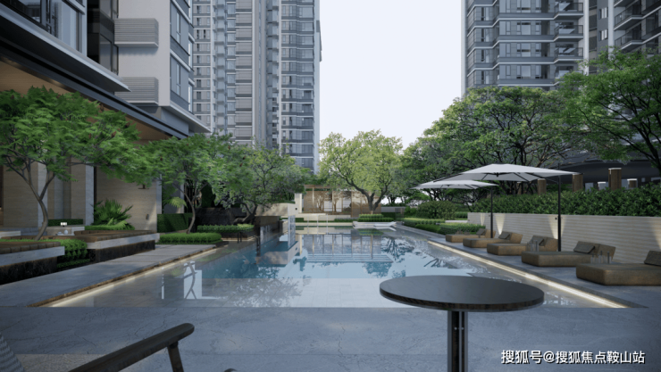 约400㎡复合泳池串联了水岸聚会廊下空间,打造游泳与家庭遛娃双核场所,在游泳的同时也能感觉惬意放松,也方便家长照护孩童并促进邻里交流。