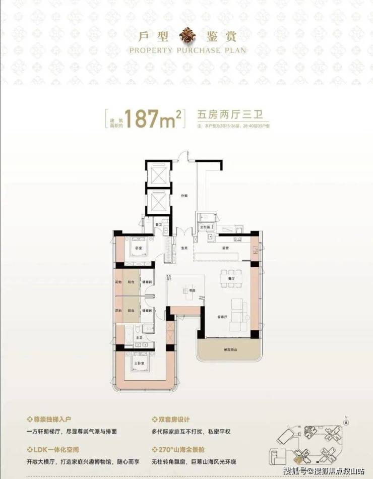 超高得房率:主力户型得房率约102%,约185㎡户型更是高达约111%,花同等价钱可多享约25-48㎡实用空间。270°寰幕全景舱:270°环幕视野及采光,搭配社交化户型布局,既保障山海景观的最大化呈现,又满足家庭互动、亲朋相聚的丰盛场景需求。