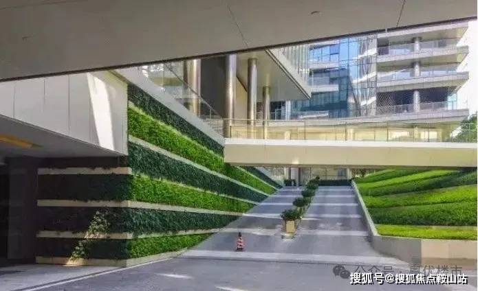 高层区地下车库入口景观,坡道空间通过设置廊架及绿化围合,形成富有层次、绿化掩映的地下车库入口景观。