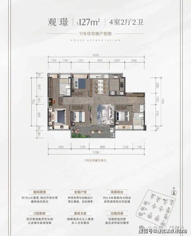 改善细节:大面宽阳台、主卧套房设计、明厨明卫。