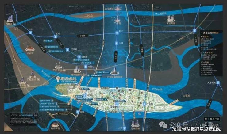 ①项目地处的洛溪岛,是继二沙岛之后,市中心第二个中轴岛,三江汇聚,处于城市中轴与珠江后航道的交汇处;