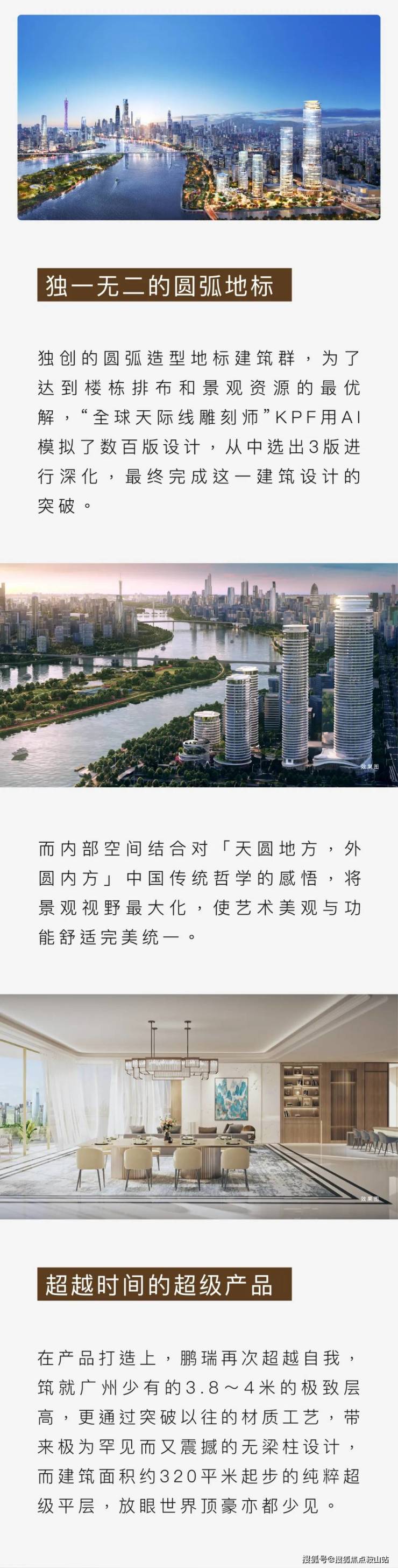 广州·鹏瑞1号的造型,设计灵感就来自于波光粼粼的珠江,采用“外圆内方”的造型也暗合中国的传统。(如上图)