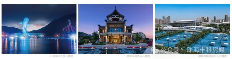 玩:长隆海洋王国、狮门娱乐天地、星乐度露营小镇、法拉利游艇码头。住:横琴悦椿酒店、横琴长隆酒店、横琴凯悦酒店、横琴臻林酒店、横琴瑞莲庄(规划中)。体:东方高尔夫球场、菲尔马术场、横琴国际网球中心、横琴水上活动中心。