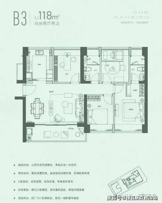 产品面积:约86-96-118㎡精装3-4房