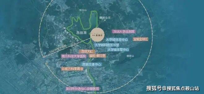 生态景观优势:三面环山(麒麟山、羊台山、塘朗山),一面临湖(西丽湖),周边环绕大沙河公园、野生动物园等四大公园,形成“三山一湖四公园”的低密生态布局,空气质量优越,负氧离子含量高