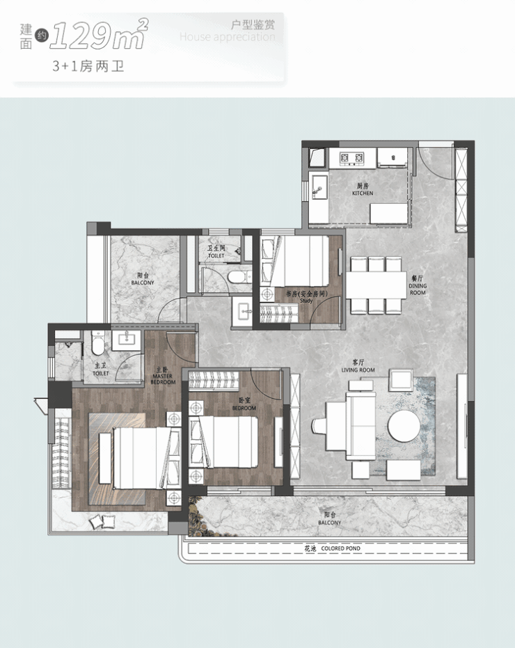 中海保利朗阅主推的建面约98-182平的全南向三至四房,整体还是可圈可点的,户型使用率在95%以上,几乎是广钢新城,使用率最高的户型。