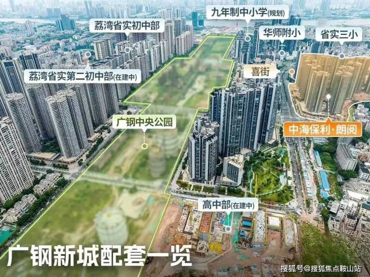 35万方广钢中央公园,相当于42个足球场,目前中央公园西区已开放;中区、东区加速建设中,整体完工预计在2026年,东临30万方广船滨江主题公园,形成超60万㎡城市绿洲。