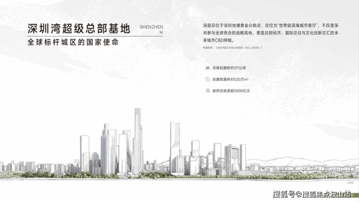 - 区域规划:深超总规划总开发建筑面积约520万㎡,定位为“全球总部聚集区、都会文化高地、国际交流中心、世界级滨海客厅”,未来将成为“全球资本锚定未来的核心坐标”;