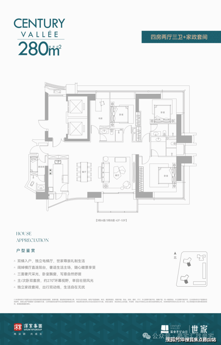 建面约280㎡ 四房两厅三卫+家政套间