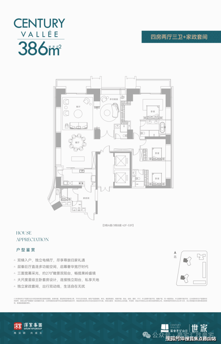 建面约386㎡ 四房两厅三卫+家政套间