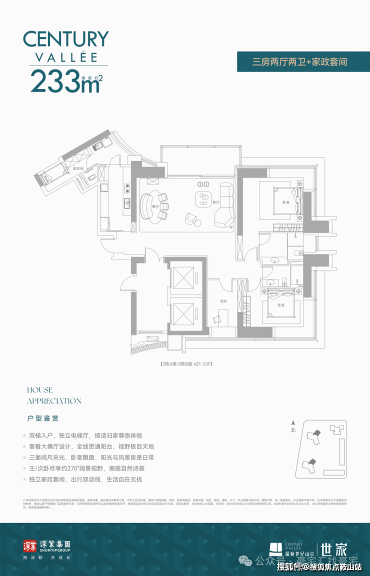 建面约233㎡ 三房两厅两卫+家政套间