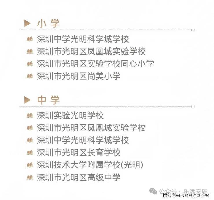 中小学资源尤为优质,项目一路之隔就是深圳中学光明科学城学校(九年一贯制公办学校),办学规模84班,可提供3960个学位(小学48班、初中36班),2023年已正式开学,师资力量雄厚,教学实力突出;根据光明区2024年学区划分,项目小学学区涵盖该校二小学部、凤凰城实验学校小学部、光明实验学校同心小学等优质学府,初中学区覆盖该校二初中部、凤凰城实验学校初中部、光明实验学校初中部等名校,选择多元。