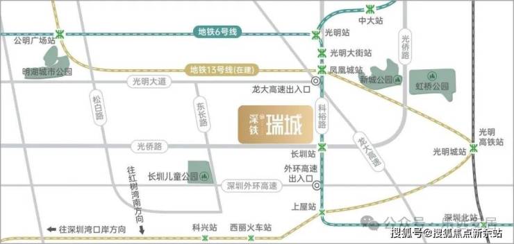 深铁瑞城坐落于深圳光明区凤凰街道甲子塘社区,光侨路与科裕路交叉口西北侧,占位光明凤凰城核心板块、光明科学城产业转化区腹地,被誉为“光明版南山粤海街道”,是广深港澳科技创新走廊重要节点,紧邻光侨路主干道(光明“深南大道”),串联光明云谷、科学方舟等产业集群,尽享世界一流科学城千亿级发展红利。项目由深圳国企深铁集团倾力打造,作为深铁在光明的标杆TOD旗舰项目,依托集团丰富的轨道综合开发经验,打造站城一体化刚需-刚改大盘,凭借“地铁入户+深中名校+国企精装”三大核心优势,开盘即热销,一二期入市曾创下当年深圳开盘销售金额与套数“双冠王”,二手房溢价超百万,市场认可度拉满,是光明片区通勤、学区双需求家庭的优选楼盘。