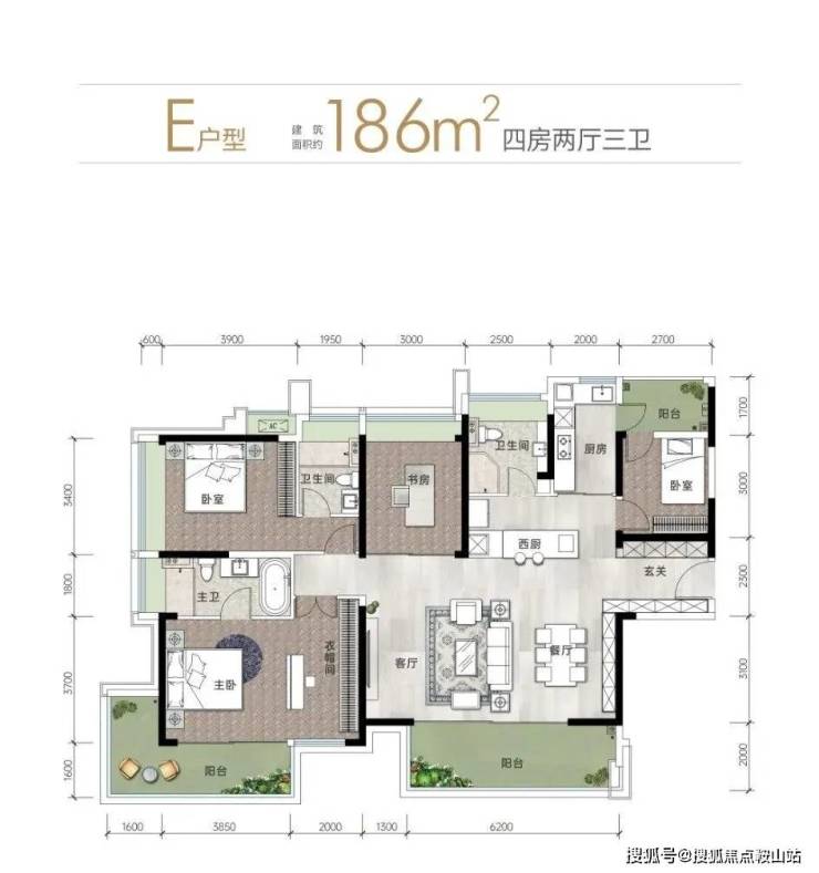 185㎡4房:6.8米横厅+中西双厨,主卧配备独立衣帽间和270°观景窗,超大阳台,中山公园美景尽收眼底,改善客群直呼“真香”。
