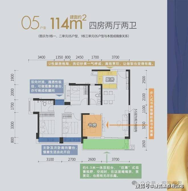 主力户型分析:项目主力户型涵盖建面约89-140㎡的3-4房,全系产品采用精装交付,注重空间功能性与居住舒适度。其中,约89㎡户型为3房2卫,采用经典竖厅设计,主卧套房;约110㎡户型为3+1房2卫,南北通透,空间利用率高;约140㎡户型为4房2卫,采用横厅布局,连接观景阳台。