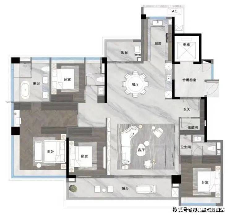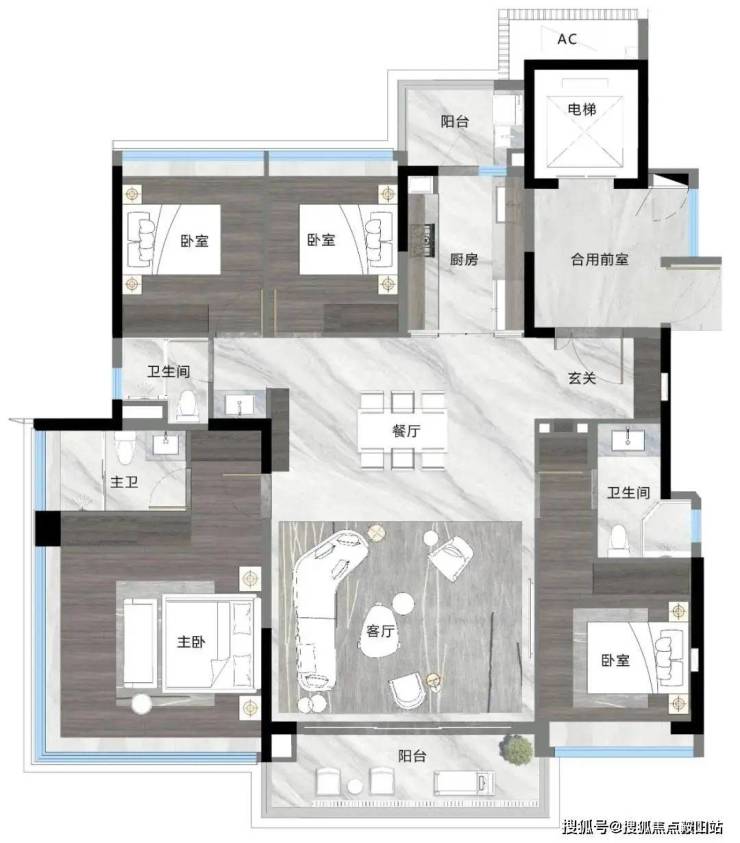 多套房设计,阔绰空间尺度,舒适度高