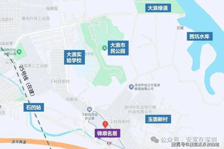 锦顺名居,北靠岭排围村,左邻大船坑市场,右近黄麻埔旧村,南边一路之隔接壤大浪中心区,与规划中的大浪时尚创意小镇相隔不远,特别距离华为在观澜拿下的大宗产业园占地76万㎡地块约6公里左右。