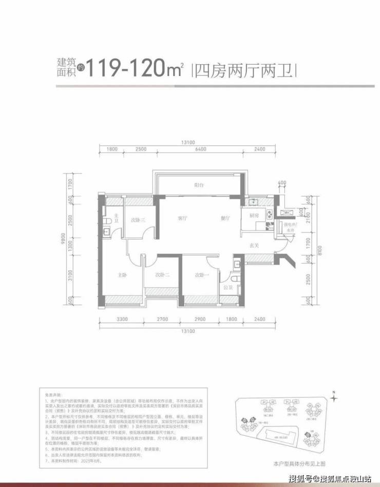 120-139㎡的四房两卫:南北通透的横厅设计,配有宽景阳台,空间宽敞明亮。
