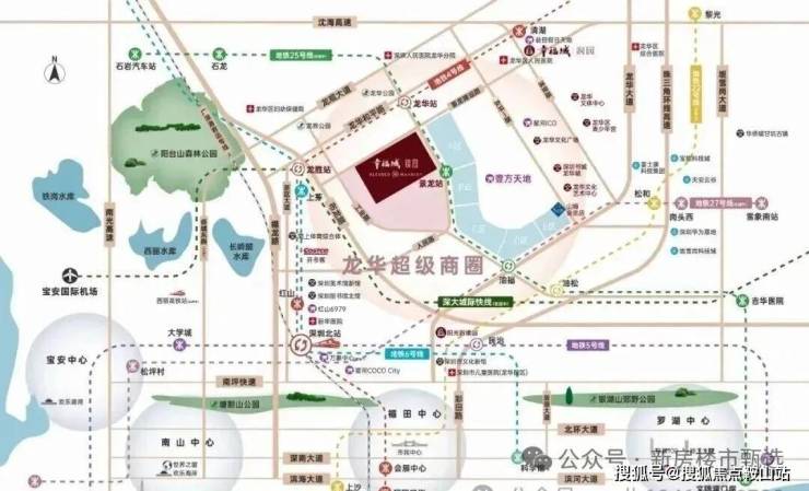 项目占位龙华超级商圈几何正芯,龙华商业中心城市更新北片区,傲踞天赋C位地块。