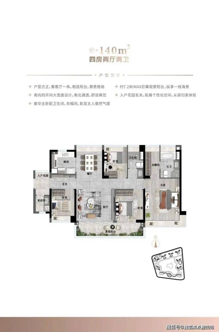 南向客厅连接大进深观景阳台,通风采光极佳。