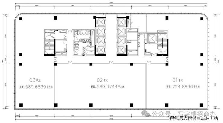 建面:三层共5711.8㎡,其中1903.9㎡/层