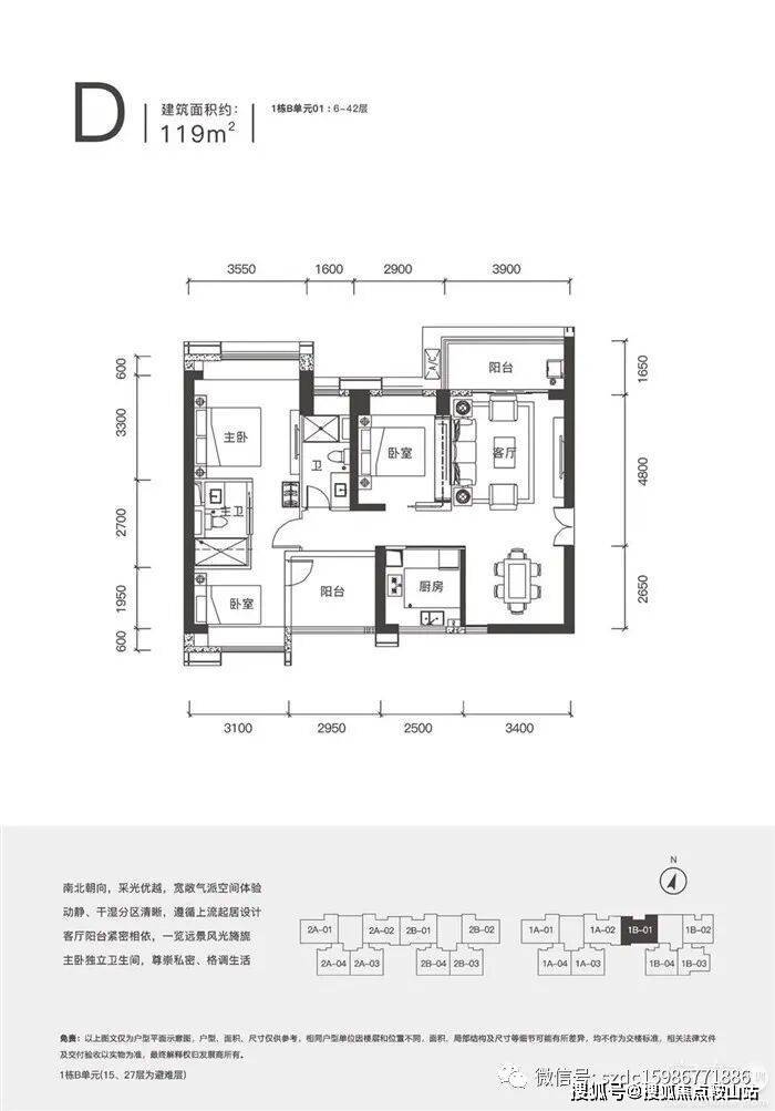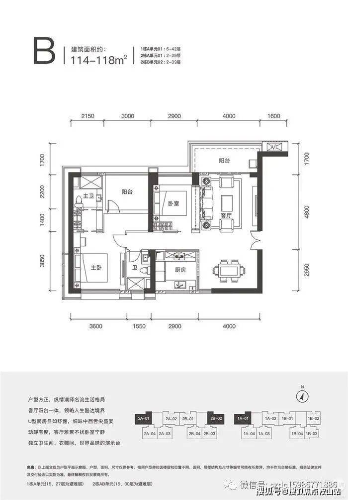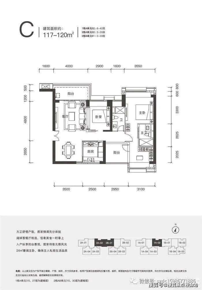 C户型117-120㎡ 1栋A单元-02、6-42层 2栋B单元-02、2-39层 2栋B单元-01、2-39层