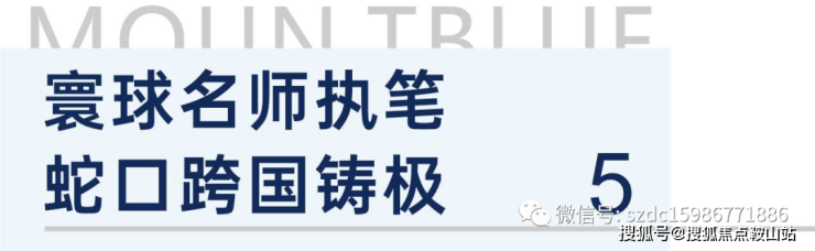 深剖临海揽山“地块之珍奇”,一是伟人指点(中国改开总设计师邓小平曾造访蛇口大南山麓),二是三山一海(三面靠山南向瞰海),二是百年南水瀑布天成。2009年,新世界集团慧眼独具,揽此天地瑰宝地段,礼聘世界名匠柏涛、AECOM、CCD、DK、ALT大师团队探讨数年,研磨十年,苦心营造,十年之后终成山海间的孤品、顶豪中的藏品。