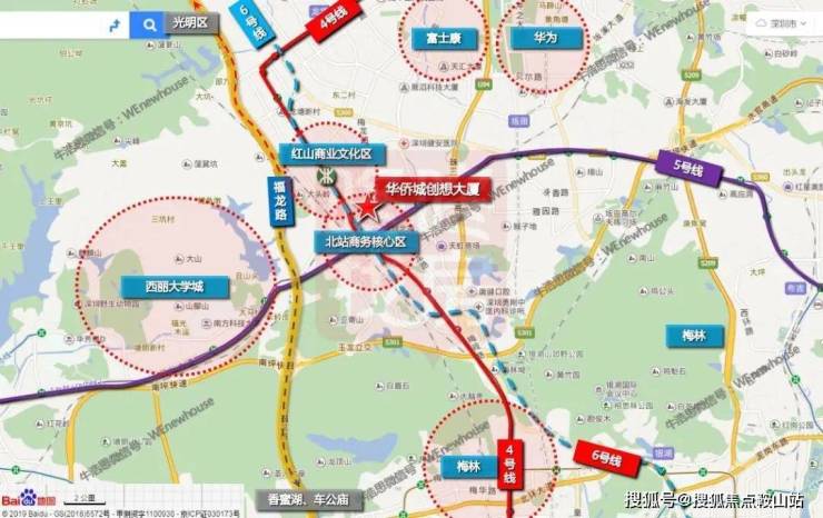 项目紧邻深圳北站交通枢纽、广深港高铁枢纽,位于地铁4号线/5号线换乘站深圳北站与4号线/6号线红山站中心区位