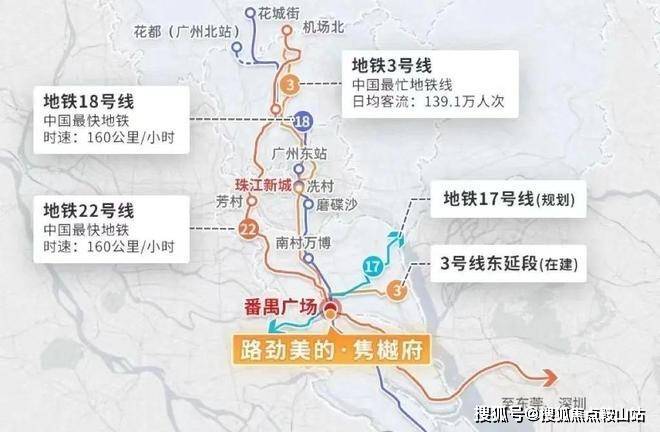 路劲美的·隽樾府距离3号线番禺广场站仅800-900米,步行即可轻松到达。这里不仅是地铁3号线、18号线、22号线以及规划中的17号线的交汇点,更是一个连接珠江新城、琶洲等城市核心区域的重要枢纽。通过自驾出行也同样便捷,周边拥有番禺大道和南沙港快速等主要交通线路,使得居民无论是通勤还是休闲出行都能享受极大的便利。