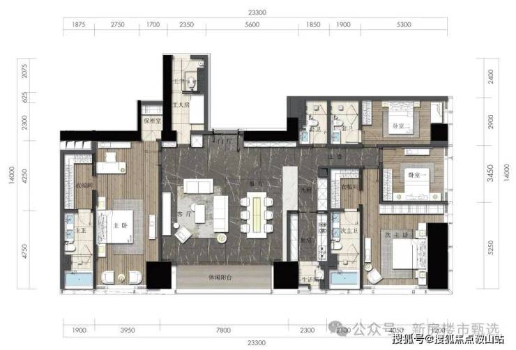 约164㎡2房2厅2卫(独立入户玄关,动静分离,约33㎡豪华主卧,承载品质生活)