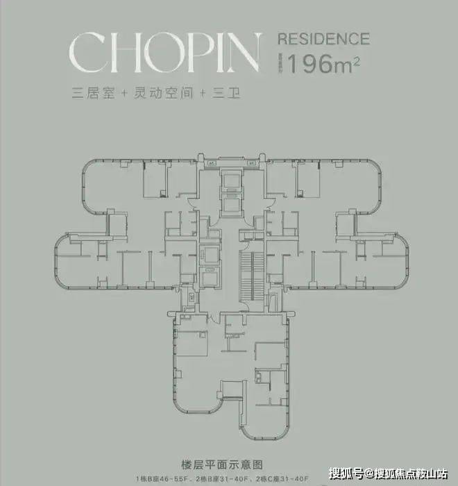 户型面积段设计为196-252-328㎡3-4房和400-600㎡顶层复式