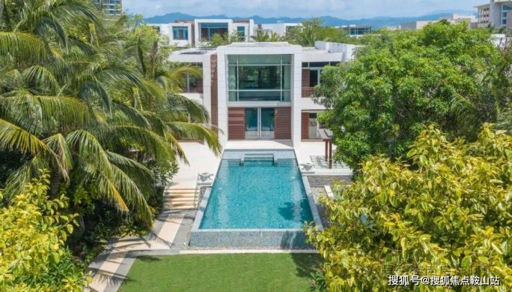 私家超大泳池,草坪活动区域,阶梯式园林分布合理规划园区