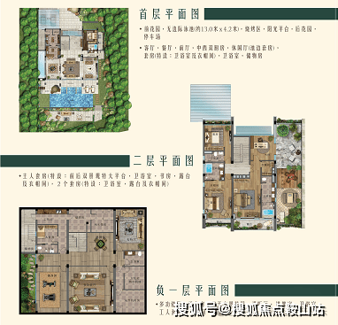 4室6厅6卫;地上三层,地下一层;单层净挑高4m;带有电梯预留井;三层超大观海阳光平台;停车双车位;私家泳池花园配30㎡独立泳池;活动平台;前后花园设有独立入户门,业主自由出入。