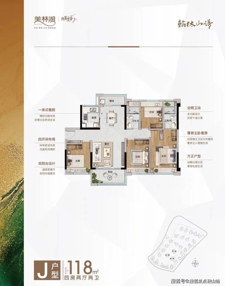 118方四房二卫南北双阳台设计,南北通透,户户对流,四开间朝南,且都是边户,采光性极佳。