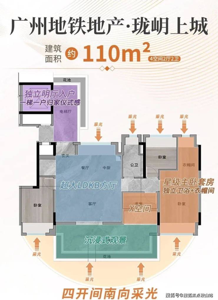 独梯入户、四面宽朝南、南北对流超大方厅...这些大平层级别配置,通通能够享有。