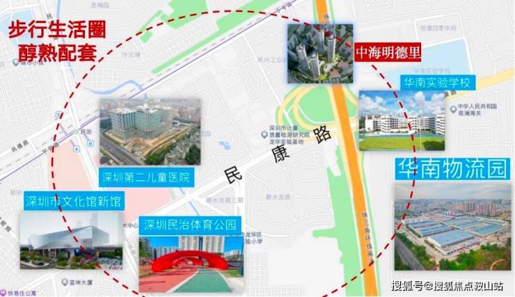 2)沿民康路两侧已陆续聚集了包括深圳市文化馆新馆(在建)、深圳第二儿童医院(已投入使用)、已开园的深圳民治体育公园等市政配套。